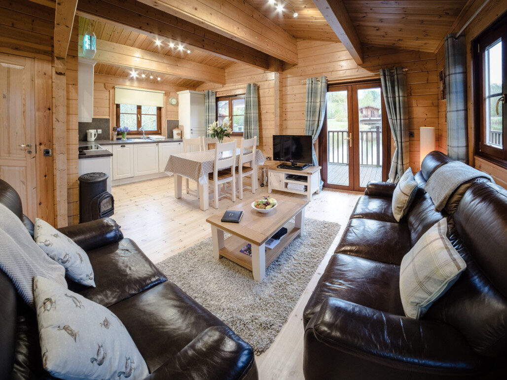 The site features four luxurious Scandinavian log cabins designed to provide a “home from home” experience. Each cabin sleeps up to 4 people and has two double bedrooms. The cabins are spacious and open-plan, featuring a fully equipped kitchen with all modern appliances, and everything you need for your stay, including cutlery and crockery – guests need only bring their food and fishing gear.